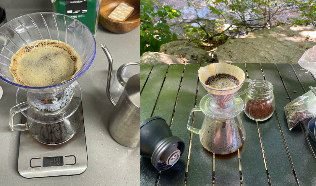 ๋๋ฆฝ์ปคํผ๋ฅผ ๋ด๋ฆฌ๋ฉฐ ์์ํ๋ ์ฌ์ ๋ก์ด ์ฃผ๋ง ์์นจ